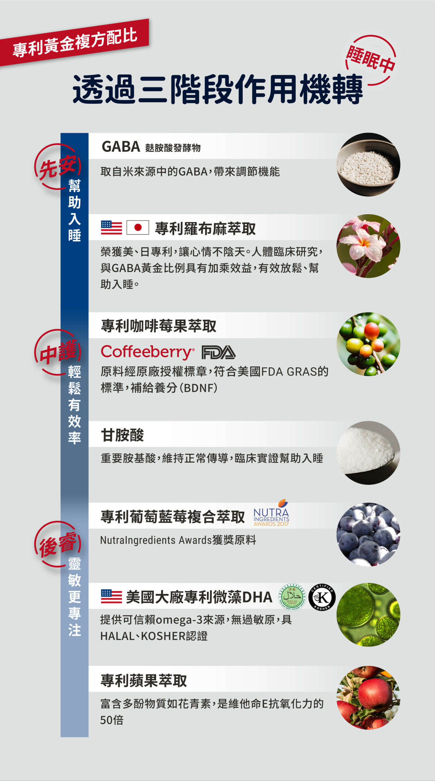 ・開車前與運動前請勿食用,因部份成份易助眠