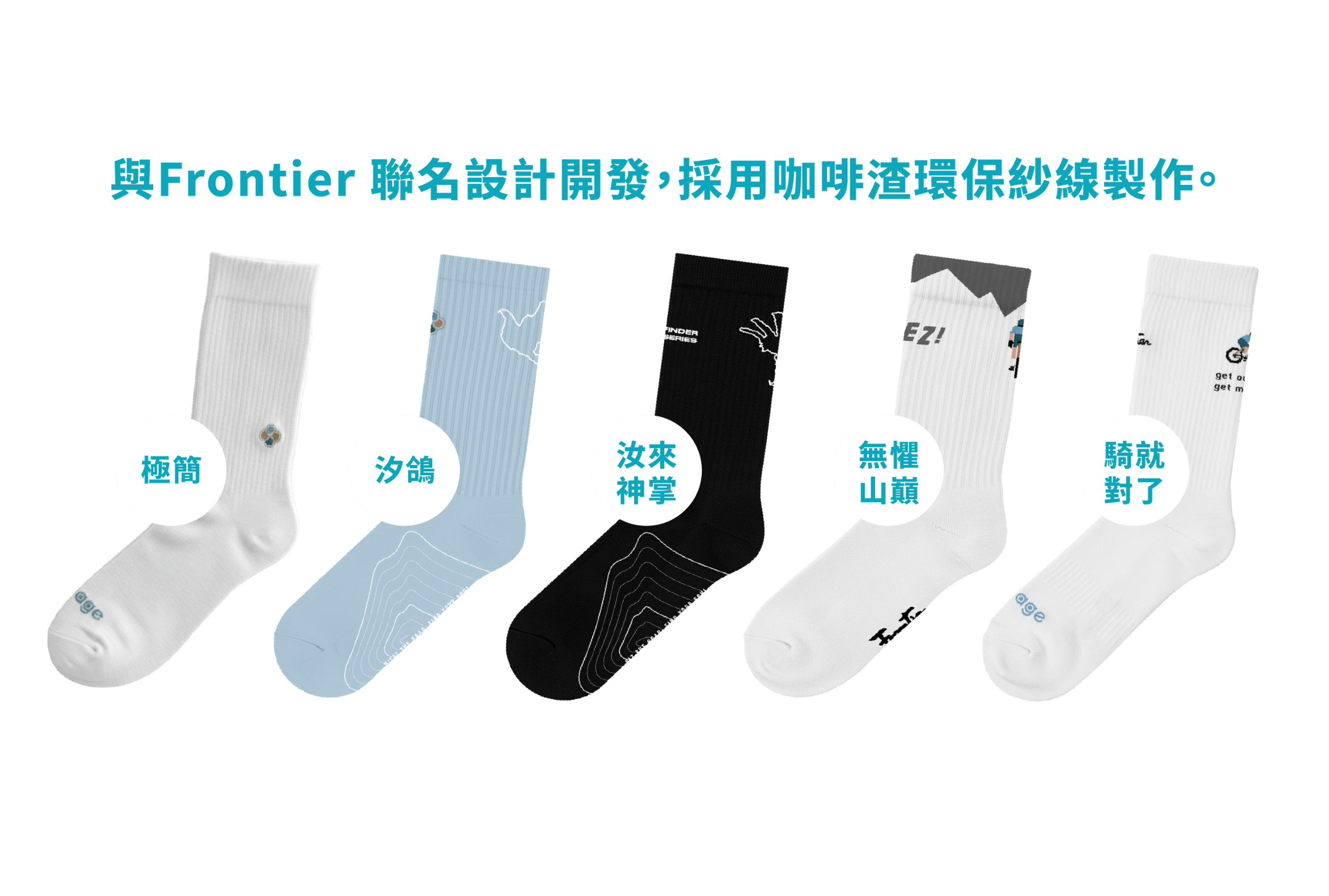 這套紀念車襪是 ensage 首次與知名單車運動品牌 Frontier 聯名設計開發,將環保與機能完美融合: