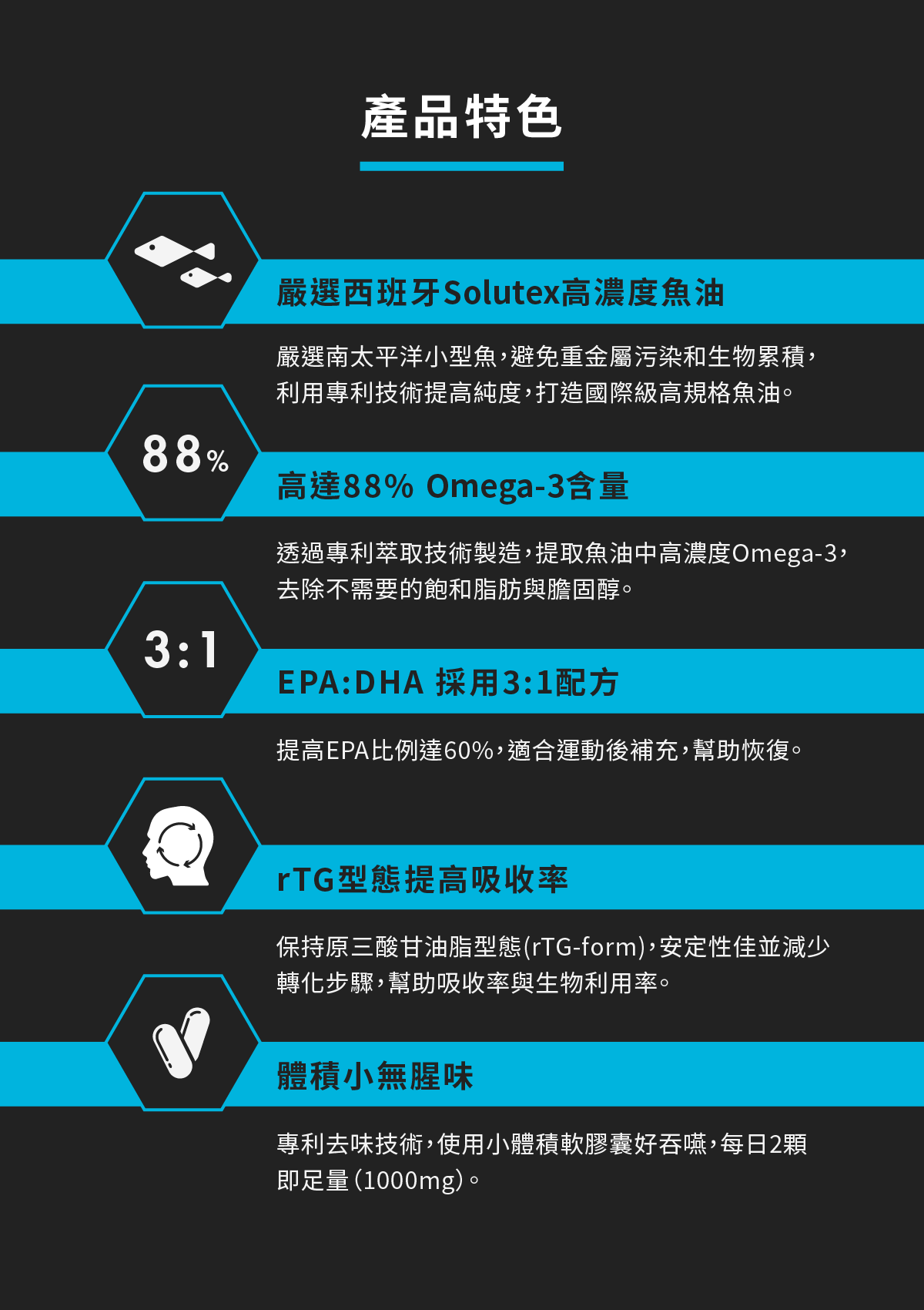 Omega-3 含量高達 88%,特別提高EPA含量達60%