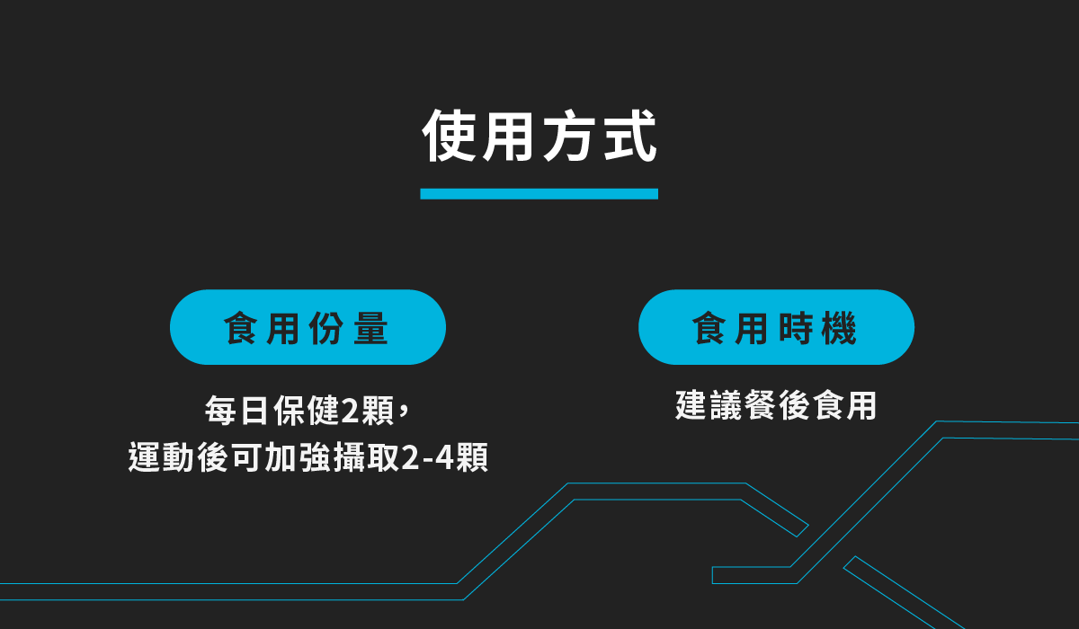 ▲ 食用方式:每日保健2顆,運動後可加強攝取2-4顆,建議飯後食用效果最佳。
