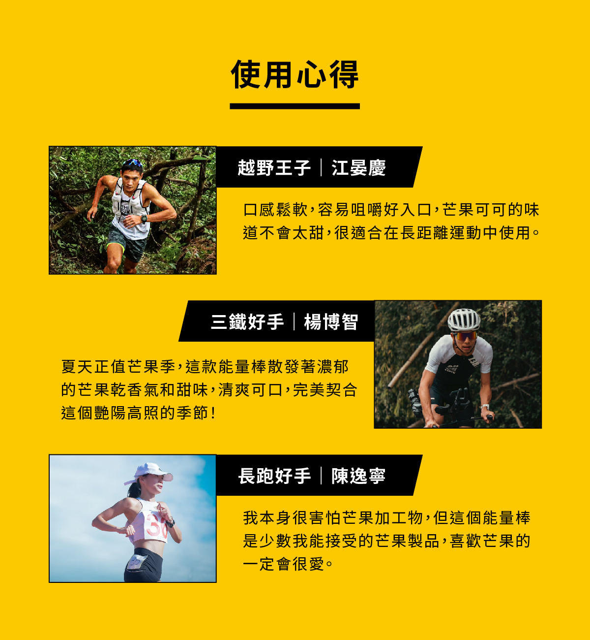 嚴選安心食材:糙米、大燕麥片、台灣在地芒果乾、法國頂級可可粉、蜂蜜、麥芽糖製成