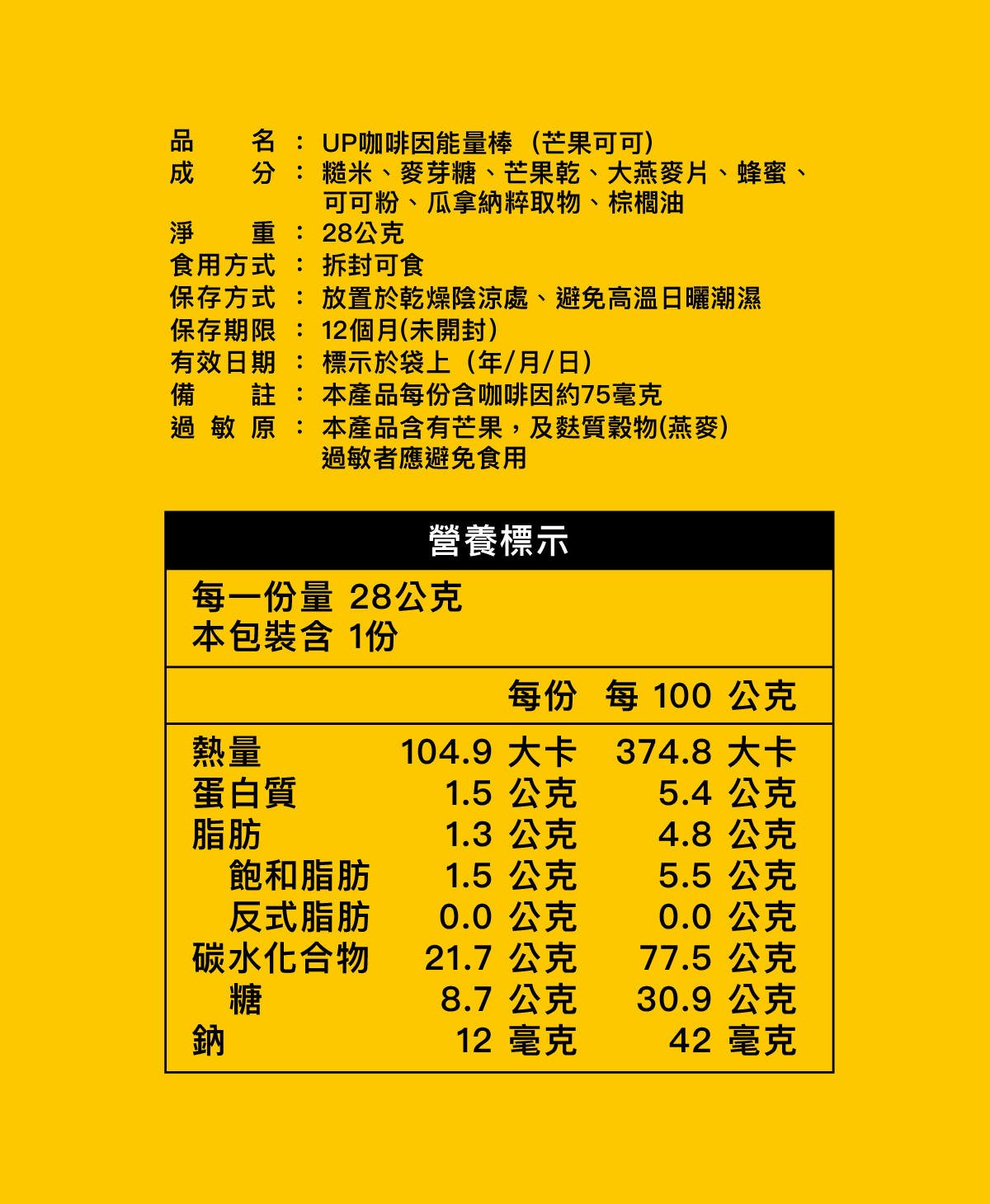 UP cama Beano & Friends 咖啡因能量棒-芒果可可 10入