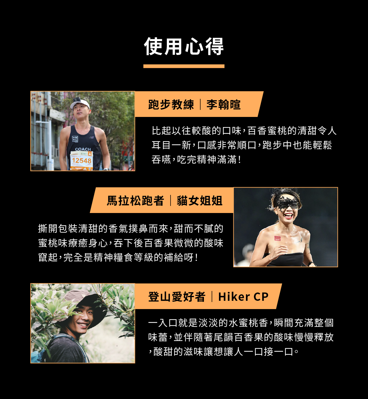 ▲使用方式:開封即食,運動前或運動中每30分鐘補充一包
